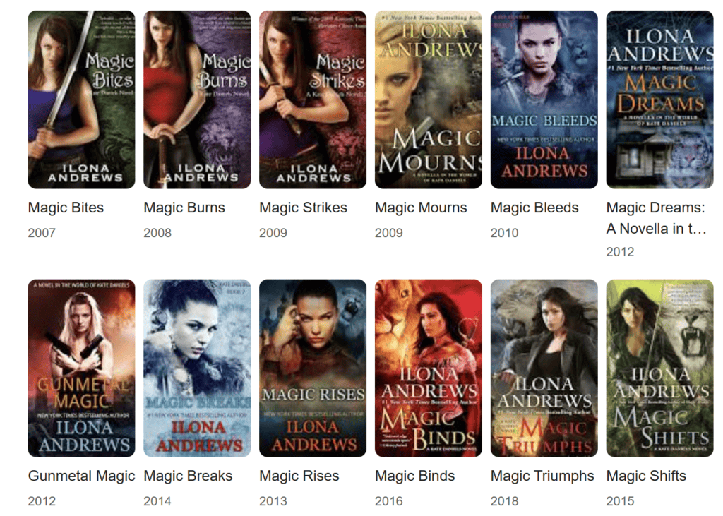 סדרת קייט דניאלס התחילה בשנת 2007 והסתיימה, עשרה ספרים, נובלות וסיפורים קצרים אחר כך, בשנת 2018. באותה שנה יצא לאור ספין אוף ראשון (מתוך ארבעה) לסדרה. The Iron Covenant, שהתחיל כבדיחת אחד באפריל, אמור היה להיות הספר הראשון בדואולוגיה Iron & Magic, אבל ב-2025, כאשר בני הזוג התחילו לפרסם את הספר השני בהמשכים בבלוג שלהם, התברר שהם מכוונים לסדרה. מתי יתחילו לכתוב את הספר הבא? מתי יסיימו את הספינאופים האחרים? לא ברור.